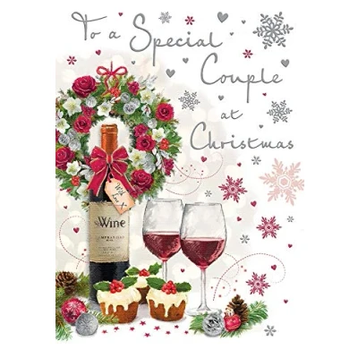 A High Quality Greeting Card and Envelope From Regal Publishing Designed and made in the UK - supporting British jobs Caption: Special Couple Description: Wine & mince pies Approximate size: 9 x 6 inches