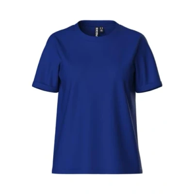 Pieces Pcria FOLD UP Solid TEE Basic Tshirt, Women's, Size: Medium, Mazarine blue