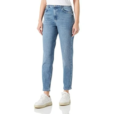 High-waisted mom jeans with ankle length for women 5-pocket jeans with tapered leg and light blue denim wash