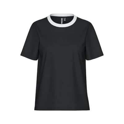 PIECES Women's Pcria Ss V Neck Solid Tee Noos Bc T Shirt, Black, S