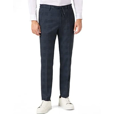 Casual suit trousers made of digitally printed outer fabric, elasticated side and drawstring. Wing pocket, welt pockets at the back. Crease-resistant. Chequered print.