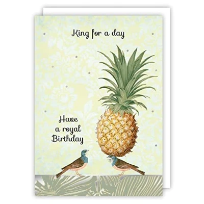 An eclectic collection featuring various artists Foiled and printed on high quality board Blank inside, individually cello wrapped with coordinated envelope Card Text : King for a day / Have a royal birthday Envelope Colour : Coordinated