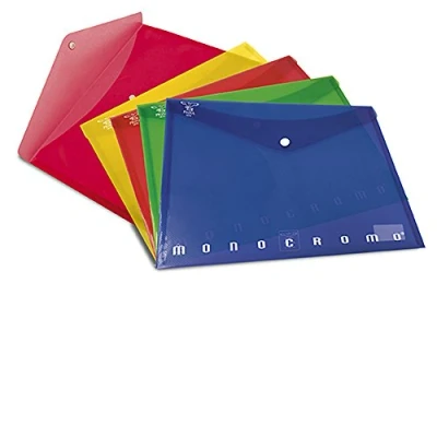 Material: PP Size: 33.3 x 23.9 cm Closure: Button 3 assorted colours