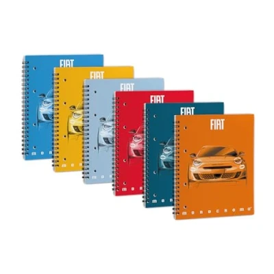 Spiral notebooks Fiat 600 70 FF. With holes and micro-perforation paper inside gr. 80 , Pack of 5 The colour Energy: Italian excellence for a colourful and sustainable world. A Limited Edition, but also a social movement, which wants to spread the power of colours and the importance of sustainability in schools, through the creation of a new line and a new partnership between Fiat and Pigna. No more grey: a campaign to give greater emphasis to the colours of life A real campaign that aims to eliminate all the gray there is to spread the energy and power of colors. A new palette that will colour Pigna notebooks and products to bring to life the first box of markers with all but one colours: grey. A centuries-old history behind it and a new project to spread Both with a positive vision of the future, the two brands share distinctive values, such as the ingenuity and beauty of Made in Italy, continuous research in the fields of Technology and Sustainability, and the centrality of edutainment for the formation of the new generations.