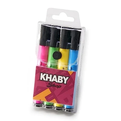 Set of 4 highlighters 4 fluorescent colors Colorful drum Chisel Tip Pink, Green, Yellow, Light Blue