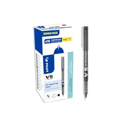 Pilot 3131910516507 V5 Hi Tecpoint Liquid Ink Roller Pen Black (Pack of 20)