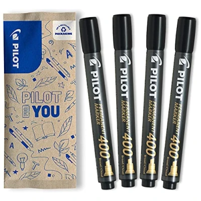 PILOT Permanent Marker 400 with Chisel Tip, Set of 4 (Black)