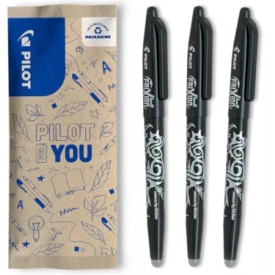 PILOT Set of 3 FriXion Ball 07 Erasable Thermosensitive Ink Pen Refillable Roller Black Medium Tip