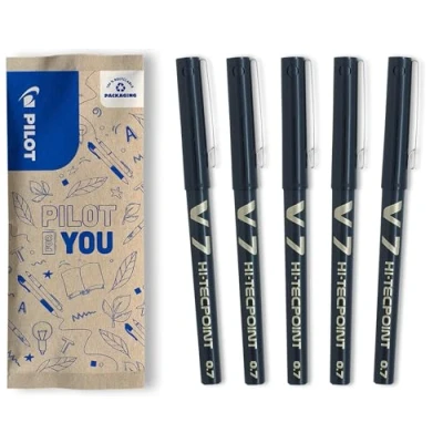 PILOT Set of 5 V7 Liquid Ink Rollerball Black Medium Tip