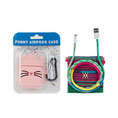 Pink Cat Shape Airpods Case Pack + USB Data Cable Lightning Thread Spring