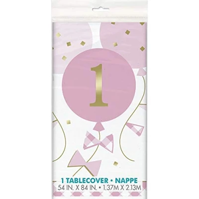 Pink Gingham 1st Birthday Rectangular Plastic Table Cover (137cm x 213cm) Perfect for Milestone Celebration 1 Pc