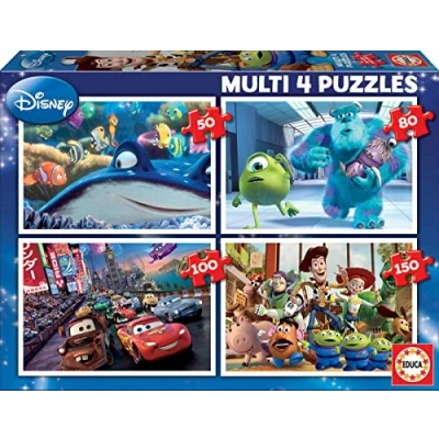 PROGRESSIVE DISNEY PIXAR PUZZLES – Pack of 4 puzzles (50-80-100-150 pieces) with the most beloved characters, ideal for children to advance step by step. LEARNING & FUN - Promotes concentration, visual memory and fine motor skills while having fun with Cars, Toy Story, Monsters Inc or Nemo. KID-FRIENDLY DESIGN - Large, safe and sturdy parts ensure easy, frustration-free assembly. GUARANTEED EDUCATE QUALITY - Vivid colors and long-lasting finishes to enjoy time and time again, made from sustainable materials. PERFECT EDUCATIONAL GIFT - Great for kids ages 5 and up; encourages self-improvement, patience and shared play. New and engaging puzzles join the children's collection Progress Puzzles from Educa A fun way for the little ones in the house to learn to make puzzles with different levels of difficulty Cardboard Puzzles, Manufacturer: Just Entertainment B.V.
