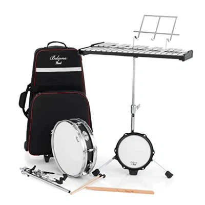 13x3 Metal Piccolo Snare Drum 2.5 Octave Bells (F5-C8) Umbrella Style Bell and Practice Pad Stand & Snare Basket 8" Tunable Practice Pad Attachable Music Rack