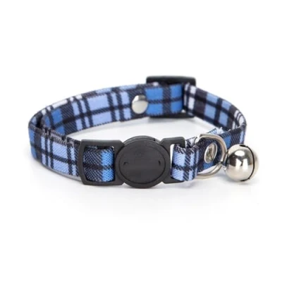 Plaid Cat Collar with Safety Buckle, Adjustable, Soft, Ideal for Walks and Secure Identification.
