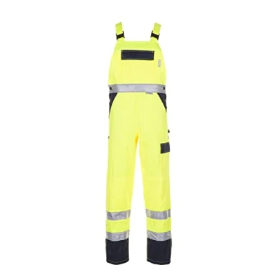 Planam 2027066 Hi Vis Dungarees, Yellow/Navy, Size 66