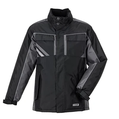 The waterproof and windproof Highline winter jacket is comfortable thanks to the fleece and the concealed zip on the collar, even if it becomes uncomfortable from the outside. Extras: Waterproof and windproof. Taped seams 2 concealed side pockets with zip. 2 chest pockets with flap. Reflective piping on the chest, sleeves and back area. Concealed front zip on the collar. Elasticated cuffs. Roll-up hood in the collar. Waist adjustment with drawstring. Inner pocket Material: Upper fabric. 100% polyester, PU coated Padding. 100% Polyester Lining 100% Polyester Please also refer to the size chart in the pictures