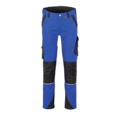 Planam Norit 6402 Men's Trousers Cornflower Blue Black Size 48 Elastic inserts in the crotch and on the saddle ensure the perfect fit and the necessary freedom of movement. The lightweight blend fabric is extremely easy to clean. 2 patch knee pockets can be operated from above, double ruler pocket on the right with pen compartment and attachment option, thigh pocket on the left with flap and pen compartment, mobile phone pocket on the left with zip Waistband with elastic insert on the saddle, elastic insert in the crotch, 2 back pockets, zip in the fly, waistband with 7 belt loops and jeans button, reflective appliqués Material: outer fabric 65% polyester, 35% cotton approx. 245 g/m²; reinforcement 100% nylon approx. 195 g/m²; elastic insert 95% polyester, 5% elastane approx. 165 g/m²