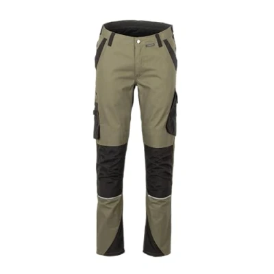 Planam Norit 6405 Men's Trousers Olive Black Size 64 Elastic inserts in the crotch and on the saddle ensure the perfect fit and the necessary freedom of movement. The lightweight blend fabric is extremely easy to clean. 2 patch knee pockets can be operated from above, double ruler pocket on the right with pen compartment and attachment option, thigh pocket on the left with flap and pen compartment, mobile phone pocket on the left with zip Waistband with elastic insert on the saddle, elastic insert in the crotch, 2 back pockets, zip in the fly, waistband with 7 belt loops and jeans button, reflective appliqués Material: outer fabric 65% polyester, 35% cotton approx. 245 g/m²; reinforcement 100% nylon approx. 195 g/m²; elastic insert 95% polyester, 5% elastane approx. 165 g/m²