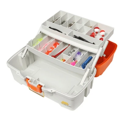 The Two-Tray Tackle Box from Plano is a great tackle box for the novice angler. This tackle box is filled with no less than 150 items so you can start fishing right away. The tackle box itself has two drawers that are adjustable from 14 to 25 compartments. In addition, there is a large storage area in the bottom and a smaller storage area in the top of the tackle box. Perfect for storing lures, small equipment and accessories!