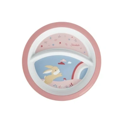 Hanni rabbit plate, made of polypropylene, with non-slip base, division in 2 halves, with rabbit motif