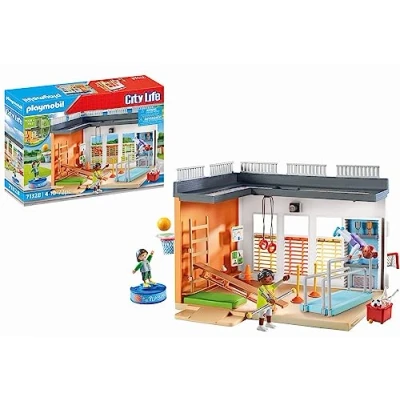 Experience action-packed sports possibilities in the large gym! With the football goal, the cool basketball hoop and other sports equipment, you can train different sports and improve your skills Imagination and creativity: The set offers children the opportunity to develop their imagination and create their own stories in a school environment. Let the sporty fun start in the children's room Toy figure set for children from 4 years: ideal for children's hands due to age-appropriate size and pleasant feel with rounded edges Daily use: high-quality and robust design, clean the parts (without stickers) under running water without chemical agents Box contents: 72-piece toy figure set with instructions: 3 figures, 69 accessories, L x D x H approx. 25.5 x 19.5 x 20 cm, weight: 520 g, 71328, Manufacturer: Playmobil