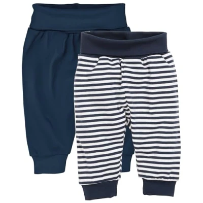 Playshoes Boys' Jogging Bottoms (Pack of 2), Striped plain navy, 74