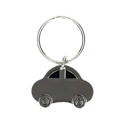 Metal key ring in the shape of the car Body in shiny nickel Front with brush plate 35 mm ring in shiny nickel