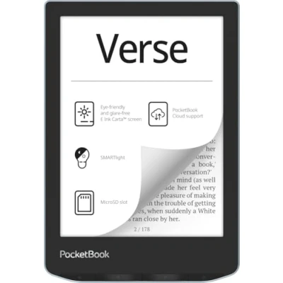 EYE-FRIENDLY & GLARE-FREE TOUCHSCREEN: The E-Ink Carta touchscreen provides a crisp and glare-free reading experience in high-resolution, making it ideal for long reading sessions. Enjoy an eye-friendly 6-inch display that comes as close as possible to a page on paper. ADJUSTABLE SMARTlight: Indulge in eye-safe reading no matter the lighting conditions, even in complete darkness! Thanks to the SMARTlight function, you can adjust not only the brightness of the screen but also the color temperature of the frontlight, choosing a warm or cool tone. SUPPORTS MOST POPULAR FORMATS WITHOUT CONVERSION: The e-reader supports 25 formats, including EPUB, FB2, DOC, DJVU, PDF (DRM), JPEG, CBR, and CBZ. Open a wide range of books, documents and images without wasting time converting files. Verse is also compatible with online library services, thanks to its Adobe DRM support. ENDLESS E-READING: PocketBook Verse ensures endless reading adventures! The device comes with 8GB of built-in memory, allowing you to store several thousand books. If that’s not enough, you can add a memory card with up to 128GB. Plus, enjoy a month of reading on just one full charge, showcasing its impressive energy efficiency.