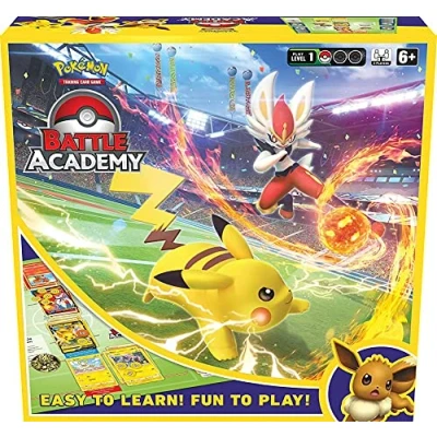 Prepare for a Pokémon battle with the ready-to-play Pokémon Trading Card Game Battle Academy. The Battle Academy contains everything two players need to play, with instructions (English language not guaranteed). The decks, so you can master your first game effortlessly. You can choose Liberlo or Pikachu Lo to lead your team into a direct battle against another coach. Then switch the decks Lo play with Eevee against Liberlo or Pikachu and lead another team from Pokémon into the arena. English Version, Ages 6+, 2 Players, 10 Minutes Playing Time, Manufacturer: Nintendo