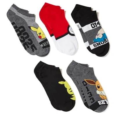 Pokemon Men's 5 Pack No Show Ankle Socks