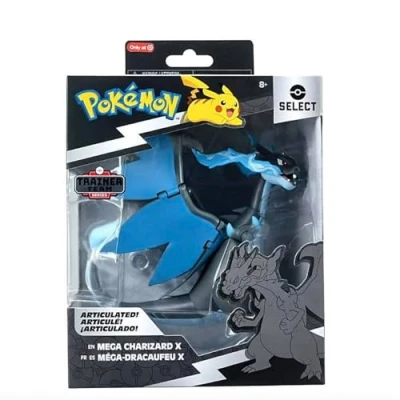 ICONIC POKEMON: Choose Mega Charizard X, the Mega Evolution of the Flame Pokémon. SUPER ARTICULATED: 6-inch highly detailed figure features over 15 points of articulation. PLAY AND DISPLAY: Display Mega Charizard X in dynamic poses with a special posing arm stand. SELECT SERIES: Boxed in the Pokémon Select Series signature Black and Silver packaging. AUTHENTIC DETAILS: Mega Charizard X looks like it jumped right out of the Pokémon Animated Series. OFFICIAL PRODUCT: Officially licensed Pokémon product from Jazwares., Manufacturer: Jazwares