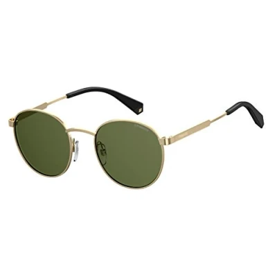 Polaroid PLD 2053/S Sunglasses - Sunglasses - Polarized lenses - Material lenses: polycarbonate - Frame material: metal - Legs length: 145mm - Frame colour: gold - Lenses color: green - Frame type: full rim - Frame shape: round - 100% protection against UV radiation - Glare-free vision - Lightweight - Robust, flexible and corrosion resistant These sunglasses are the perfect accessory by the water, on the road or in town. The strong metal frame makes these glasses light yet strong. Equipped with polarizing lenses for glare-free vision, so you can see what’s going on below the water’s surface. In addition, the lenses offer 100% UV400 protection from UV rays, providing protection for your eyes even in the brightest sun. Moreover, metal glasses are virtually indestructible – tough, flexible and corrosion resistant.