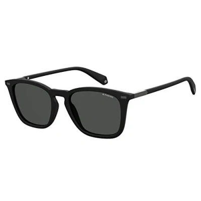 Black sunglasses with polarised lenses for men and women. Black polycarbonate front. Black polycarbonate legs with metallic gold decoration with laser engraved motif. Polaroid logo on the left glass and iconic Polaroid pixels on the ends of the eyeglass legs. Polarized Triacetate Lenses Black polycarbonate front Glasses legs made of black polycarbonate with metallic gold decoration with laser engraved motif Polaroid Logo on the left glass and iconic Polaroid Pixel on the tips of the glasses legs Polarized Triacetate Lenses