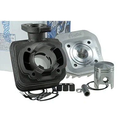 Polini - Cylinder kit Polini 50cc for scooters with a 50cc 2-stroke air-cooled engine block Polini - Cylinders are known as very wear-resistant cylinders of high quality Cylinder comes complete with pistons and gaskets Please note: This cylinder only fits moped (45 km), not moped (25 km) Type: Cylinder Brand: Polini Size: 40 mm Displacement: 50 cc Cooling: Air Cooled Material: Cast Iron Piston Pin: 12 mm Contains: Piston, Gasket Kit and Cylinder Head and Diaphragm Plate Loose Parts: - Gasket Kit: 209