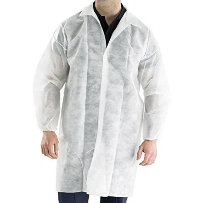 Non woven polypropylene Disposable visitors coat with collar Velcro fastening