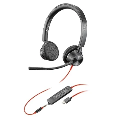 Poly Blackwire 3325 Wired Headset Flexible Microphone Boom Hi fi Stereo Connect to PC/Mac/Mobile via USB C, A, or 3.5 mm Works with Teams, Zoom