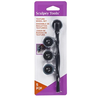 Comfort handle with interchangeable texture wheels Easily adds texture and details to clay. Included four texture wheels: Feather Stitch, Rope, Vine and Pearl. Universal handle. Works with other Sculpey texture wheel heads.