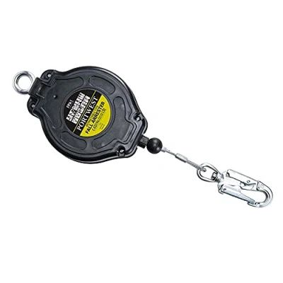 FUNCTIONALITY: This fall arrest block comprises of a retractable lifeline made of 4.8mm wire rope which is stored on a reel within a protective housing. The reel is spring-based to wind the retractable lifeline in. The reel incorporates an inertia brake mechanism, which allows the lifeline to be slowly extracted and automatically retracted to accommodate the user’s body movements. It also comprises of a swivel snap hook with a double safety lock and fall indicator. MATERIAL, SIZE AND RANGE: 10m Retractable Fall Arrest Block. Available in Black. One Size. ABS Plastic Shell, Alloy Steel, Heat Treated. STANDARDS: EN 362, EN 360