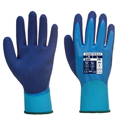 PRODUCT USES: Featuring the latest innovation in double coating technology, the Liquid Pro offers maximum liquid protection, The smooth latex is fully coated before a second latex foam palm dip is applied, this process ensures maximum and superior grip is achieved DESIGN AND FUNCTIONALITY: Latex foam coating for excellent grip in wet and dry conditions, Dual latex coating for additional protection in tough conditions, 13 gauge liner for a ideal fit, Elasticated cuffs for a secure fit, CE certified Latex dipped for maximum grip, ANSI cut level A1 ANSI abrasion level 2 MATERIALS: Nylon, Elastane, Portwest products are manufactured to the highest standards with quality materials to ensure durability, comfort, and style RANGE: A wide and increasing range of hand protection products is available, In order to help cater to every need, Only the ideal materials and manufacturing methods are used in the production of Portwests' extensive range of Hand Protection products