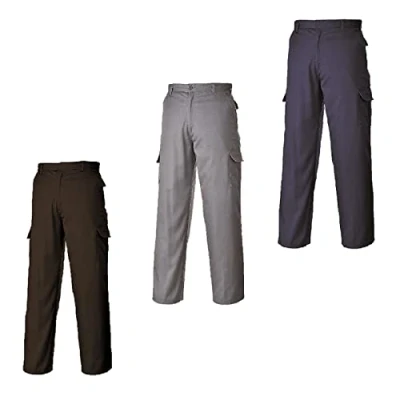 PRODUCT USES: This garment portrays all the original styling of the modern-day work trouser, Constructed from our rugged, pre-shrunk Kingsmill fabric, the Combat Trouser is built to take on the toughest of jobs DESIGN AND FUNCTIONALITY: Two back patch pockets, 6 pockets for ample storage, Reinforced seams for extra durability and strength, Easy access cargo pockets, Hook and loop closure for easy access, 40+ UPF rated fabric to block 98 Percent of UV rays Bartacked at all stress points MATERIALS: Kingsmill: 65Percent Polyester, 35Percent Cotton, Shell Composition: 65Percent Polyester, 35Percent Cotton, Portwest products are manufactured to the highest standards with quality materials to ensure durability, comfort, and style PRODUCT CARE: Max wash temp 60°C, normal process, Do not bleach, Tumble dry normal, Drip line dry, Iron max 150°C, Professional dry clean, Tetrachloroethene, normal process, RANGE: Portwest workwear offers a range of designs and features suitable for many end uses, Quality fabrics and construction techniques are used guaranteeing comfort and safety
