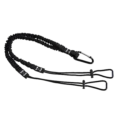SAFETY: Double elasticated tool lanyard for multiple tools. FP54 item prevents tools from becoming dangerous falling objects and a safety hazard when working at height. Safe Working Load 3kg. MATERIAL, SIZE AND RANGE: Double Tool Lanyard. Black (45). Polyester Webbing, Aluminium. Model Number: FP54BKR