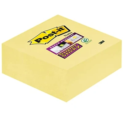 Always at hand: in cube format, you always have your Post-it Super Sticky Notes at hand and enough sheets in stock. Thanks to their extra strong pressure-sensitive adhesive, the Post-it Super Sticky Notes also adhere to textured and vertical surfaces, e.g. on the PC monitor, on the phone or on doors. Stick again and again: Post-it Super Sticky Notes can be removed without leaving any residue and stick again and again. For structuring and organising projects, as a memo on the monitor or as an organiser on transparent sleeves - in the office, school and everyday life, the Post-it Super Sticky Notes are indispensable. For the sake of the environment: PEFC certified paper, colour: yellow, size: 76 x 76 mm, unit: 1 cube of 270 sheets