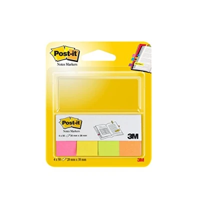 Post it Notes Markers, Assorted Neon Colours, 20 mm x 38 mm, 50 Sheets/Pad, 4 Pads/Pack