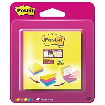 Compared to Post-it Standard Notes, they stick twice as strong and last longer Each pack contains a total of 300 sheets Post-it Notes are made from PEFC certified paper fibres sourced from sustainable forestry and controlled sources. Made with adhesives made from 60% pressure-sensitive adhesive based on annually renewable plants Download the free Post-it app to instantly record, save your work and share your notes directly with your team. Size: 76 x 76 mm Unit: 4 pads of 75 sheets