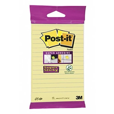 Post it Super Sticky Large Notes, Canary Yellow, Lined, 102 mm x 152 mm, 45 Sheets Self stick Notes For Note Taking, To Do Lists & Reminders