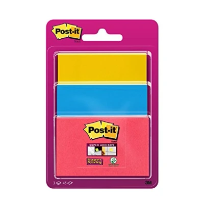 Post it Super Sticky Notes, Assorted Colours and Sizes, 3 Pads, 45 Sheets per Pad, Extra Strong Notes for To Do Lists Reminders