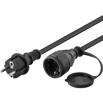 Extension lead with heavy rubber cable and protective cover, angled earth plug and connector For outdoor application, IP44 protection rating Protective contact type connection (type F CEE 7/4) Connection 2 type protective contact plug (type F CEE 7/4)