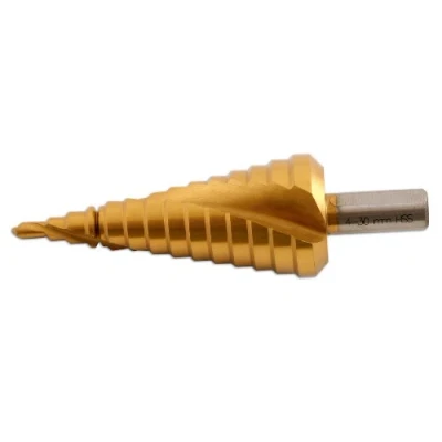 2 mm steps. The step drill is a general multi use product, ideal for mechanics, panelbeaters and anyone involved in fabrication, it give the user the ability to increase the sizing of drilled or punched alignment holes accurately. 10 mm shank. HSS titanium-nitride coated to increase tool life. Spiral flute with edge breaker, self starter.
