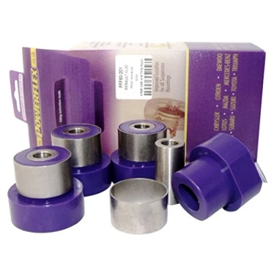 Powerflex PU polyurethane sockets are available in 2 variants. The classic purple line for normal road vehicles with a hardness of approx. 80 A Shore hardness and the Black Series with approx. 95 A Shore hardness for road use or for Group N racing vehicles or close to series motorsports. The advantages: - Longer life for your tyres - Longer life for your tyres - Improved road holding - Increases safety in road traffic - More direct steering behaviour
