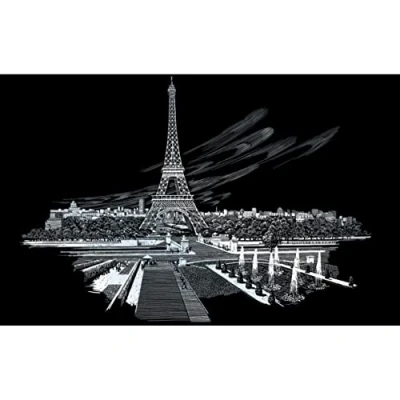 Bring out the extraordinary and impressive Eiffel Tower in silver with the included scratch pen With the included sample piece, you can practice your line guide and protect your motif from fingerprints Scratching instead of painting, paint or a brush you do not need thanks to the compact size of approx. 29 x 39 cm and the few necessary accessories, it is ideal for on the go The detailed motif can be created without much effort, the ergonomic handle and the deburred blade of the scratch pen reduce the risk of injury The conscientious tracing of the delicately highlighted lines improves your fine motor skills, promotes your concentration and relieves stress, Manufacturer: Royal Brush Manufacturing
